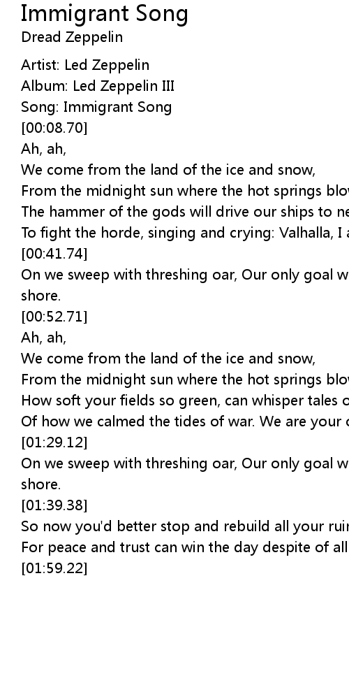 [00:08.00] Song: Immigrant Song