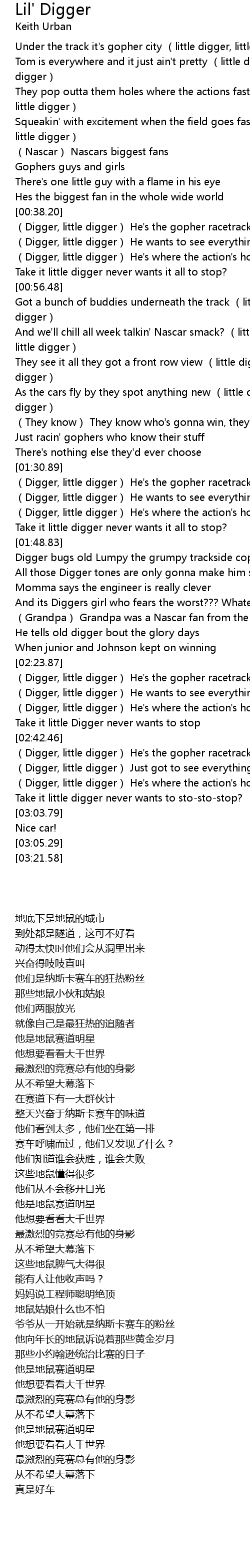 | [00:38.54] | Digger, little digger He' s the gopher racetrack king |