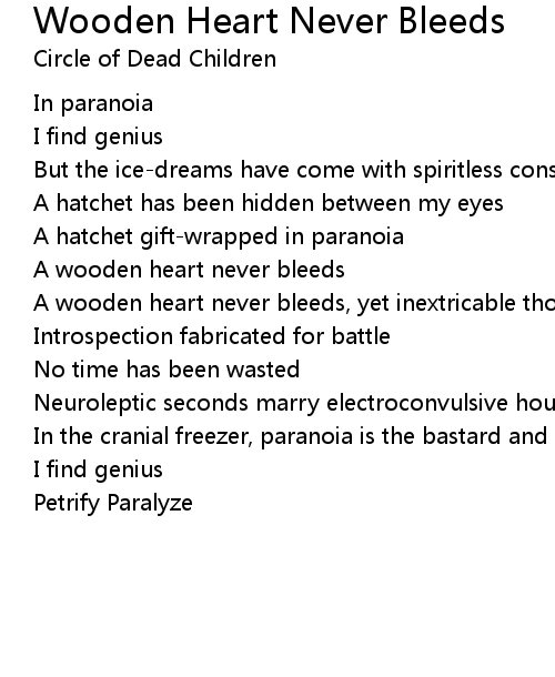 | A wooden heart never bleeds, yet inextricable thoughts still weave | |