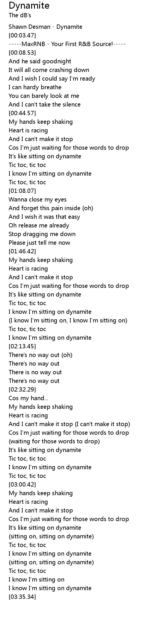 [03:21.34] (sitting on, sitting on dynamite)