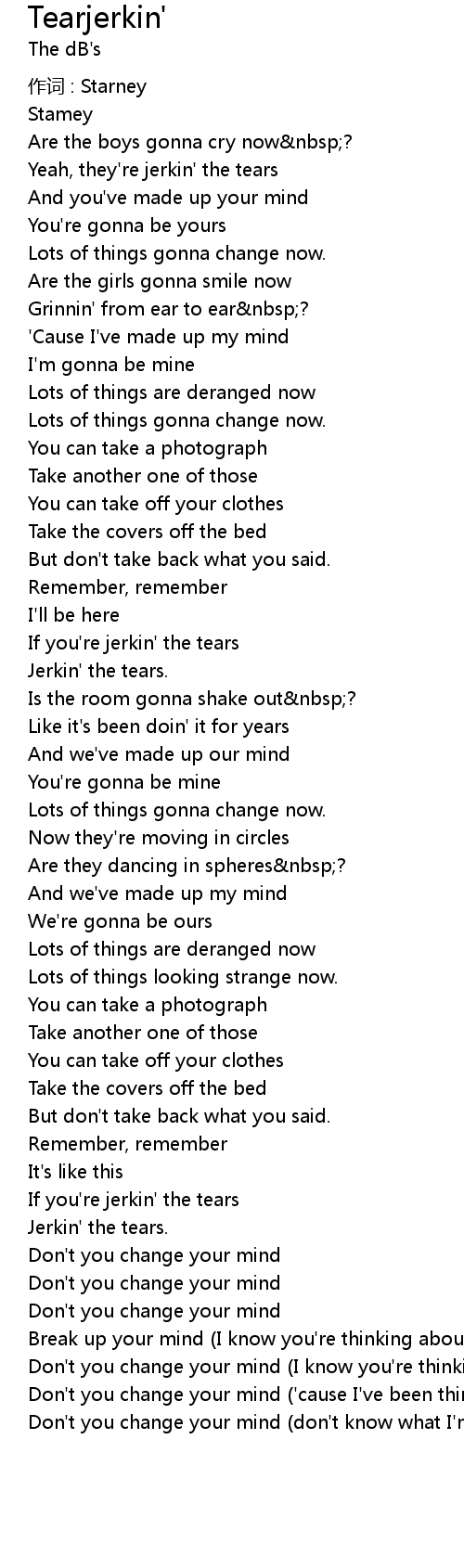 | If you' re jerkin' the tears | |