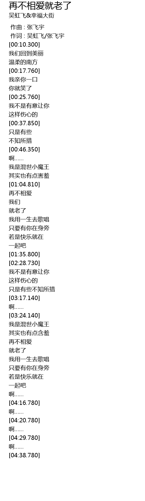 | [00:01.00] | 作词 : 吴虹飞/张飞宇 |