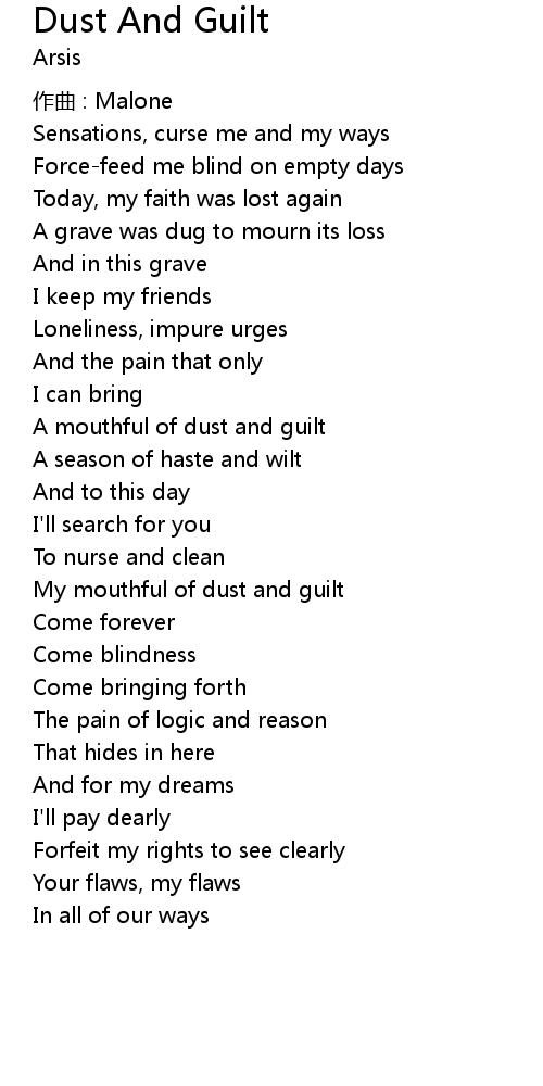 | Song | Dust And Guilt |