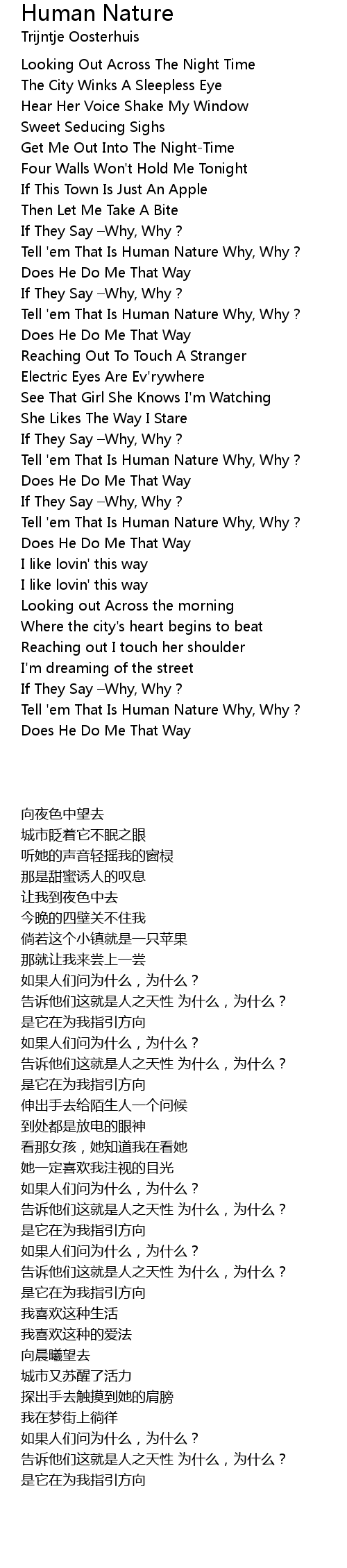 | [01:35.130] | Tell ' em That Is Human Nature Why, Why? |