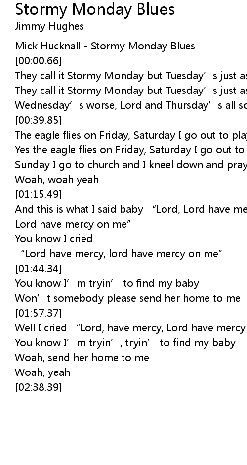 | [00:15.93] | They call it Stormy Monday but Tuesday' s just as bad |