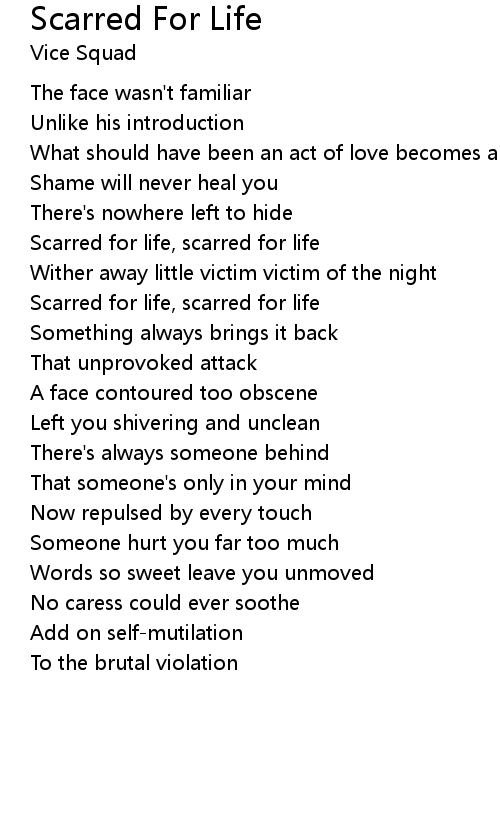 Scarred for life, scarred for life |