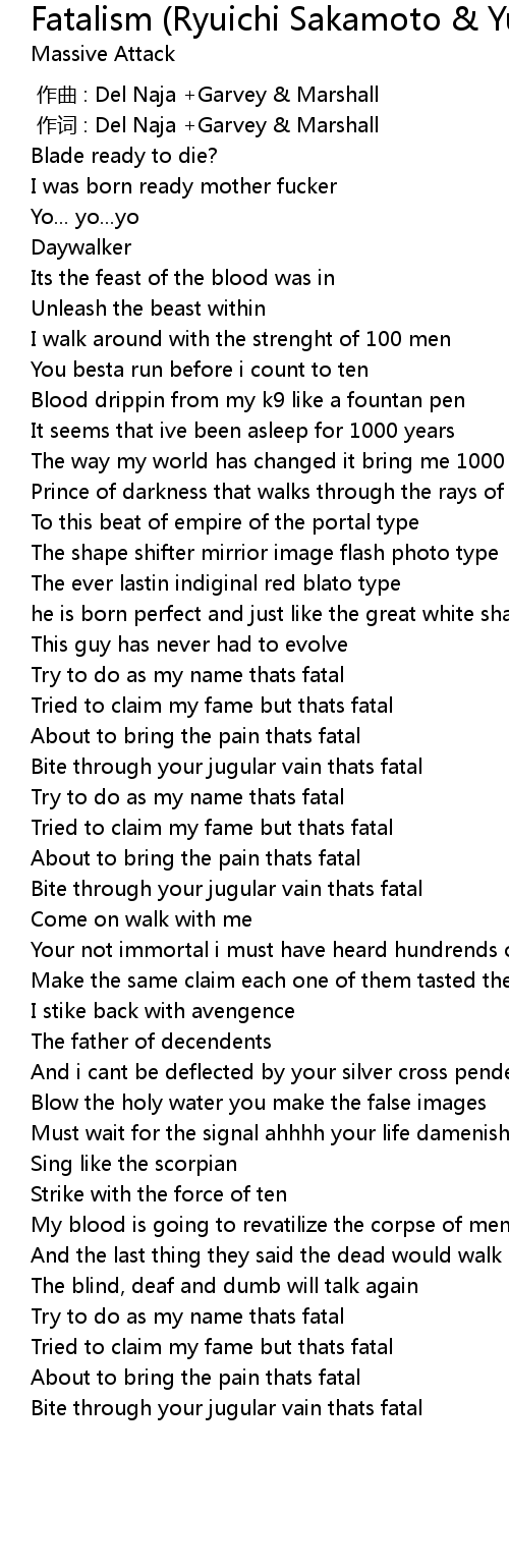 | [03:30.30] | Bite through your jugular vain thats fatal |