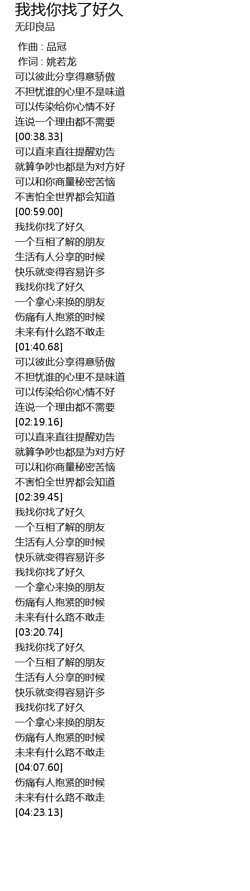 | [03:29.40] | wo zhao ni zhao le hao jiu |