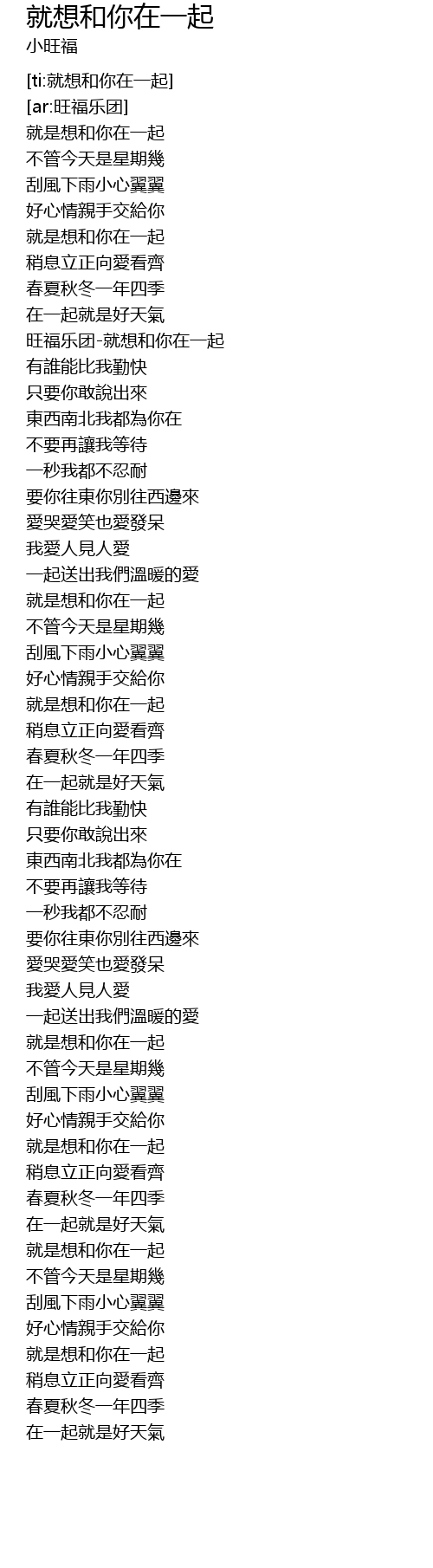 | [00:23.771] | 旺福乐团-就想和你在一起 |