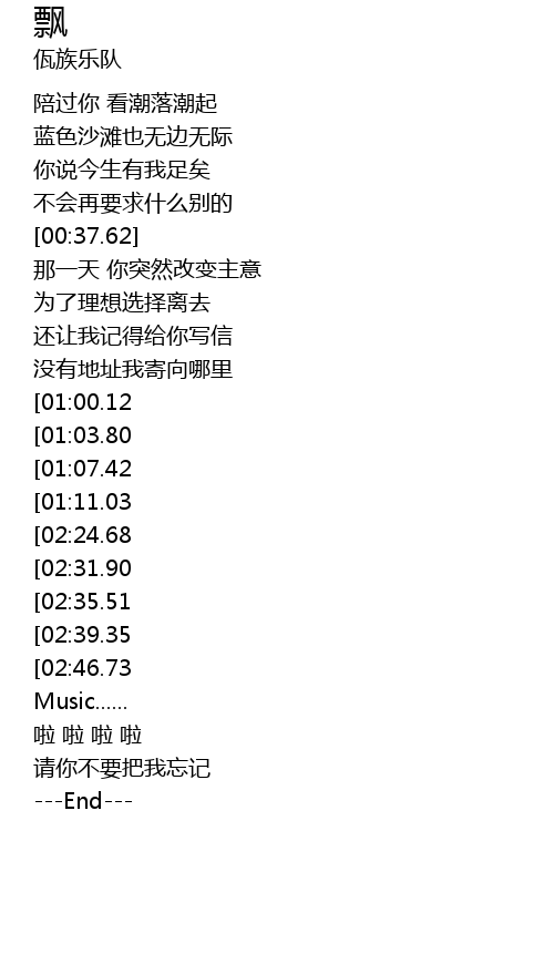 | [03:08.88][02:39.35][01:31.09] | piao bo de ai qing mei you gui qi |