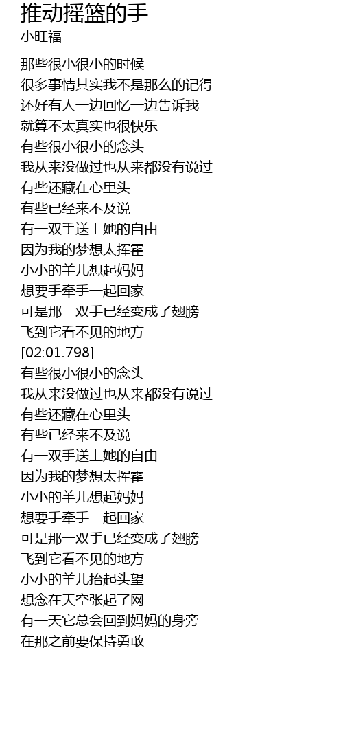 | [01:35.699] | 小小的羊儿想起妈妈 |