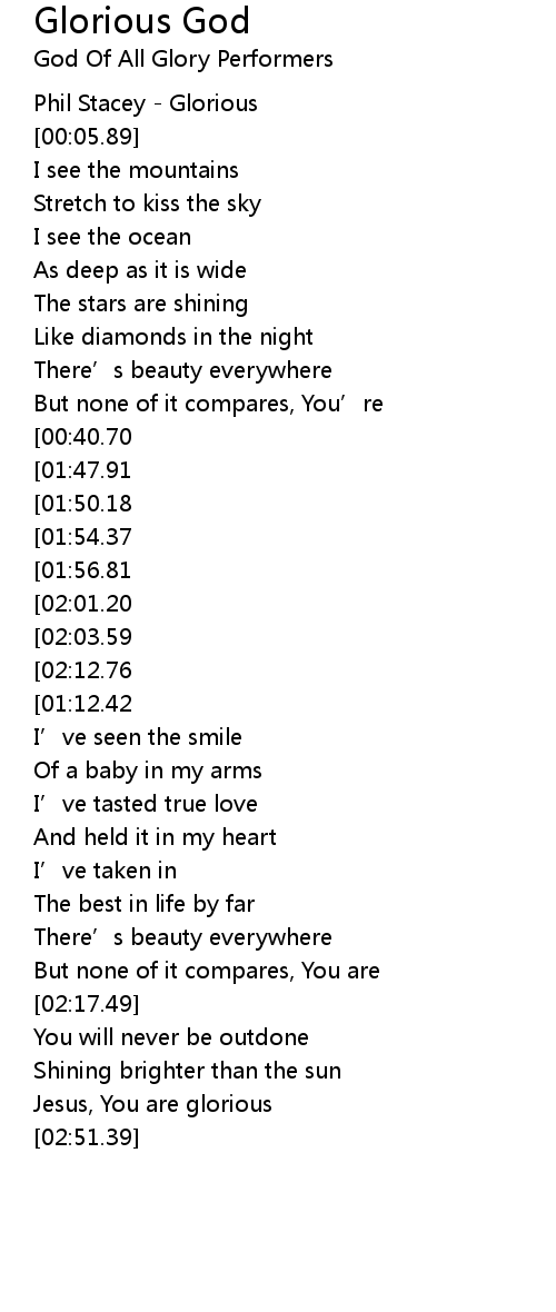 | Song | Glorious God |