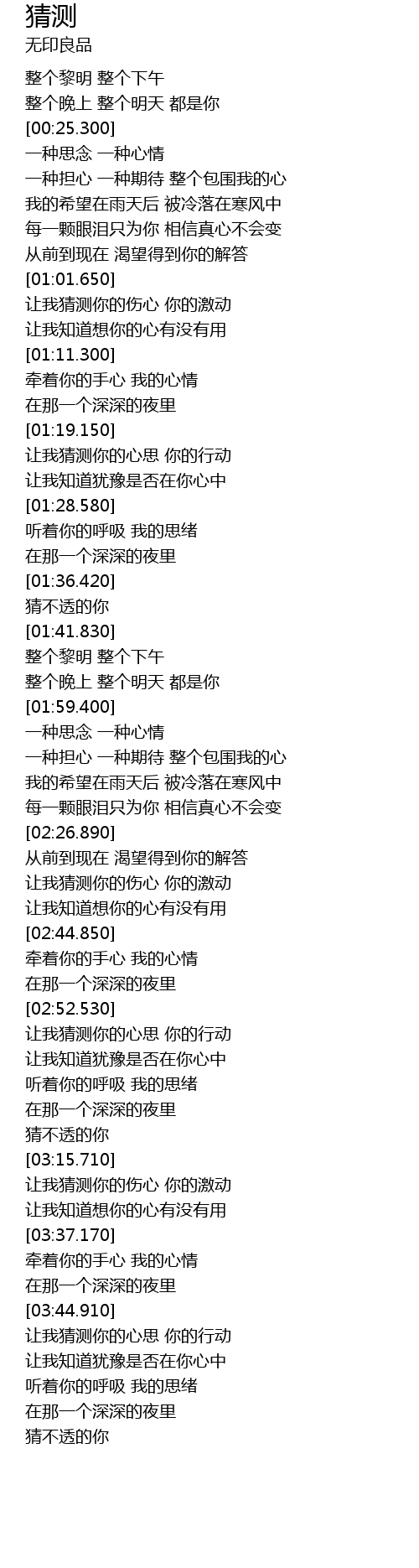 | [03:28.490] | 让我猜测你的伤心 你的激动 |