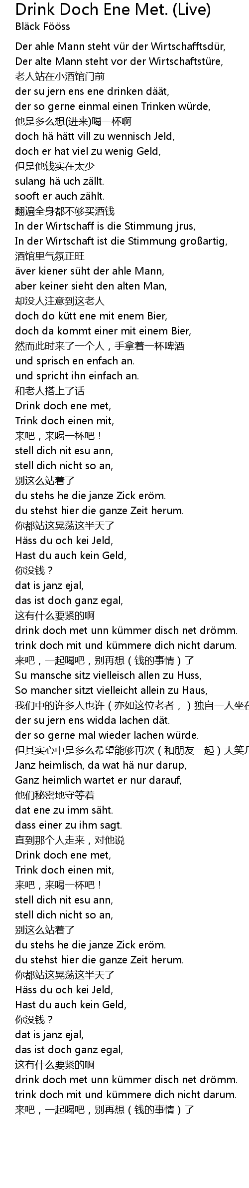 | Der ahle Mann steht vü r der Wirtschafftsdü r, | |