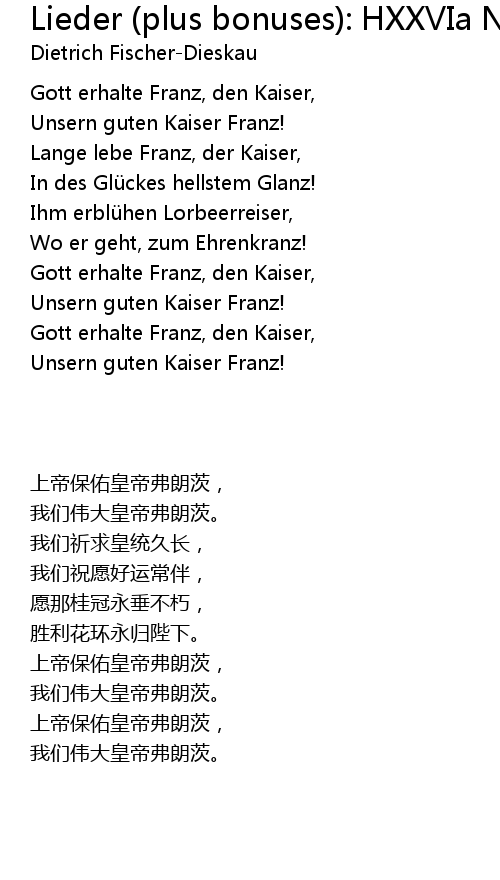 | Song | Lieder (plus bonuses): HXXVIa No.43: Gott, erhalte den Kaiser |
