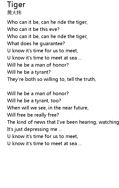| Who can it be, can he ride the tiger, | |
