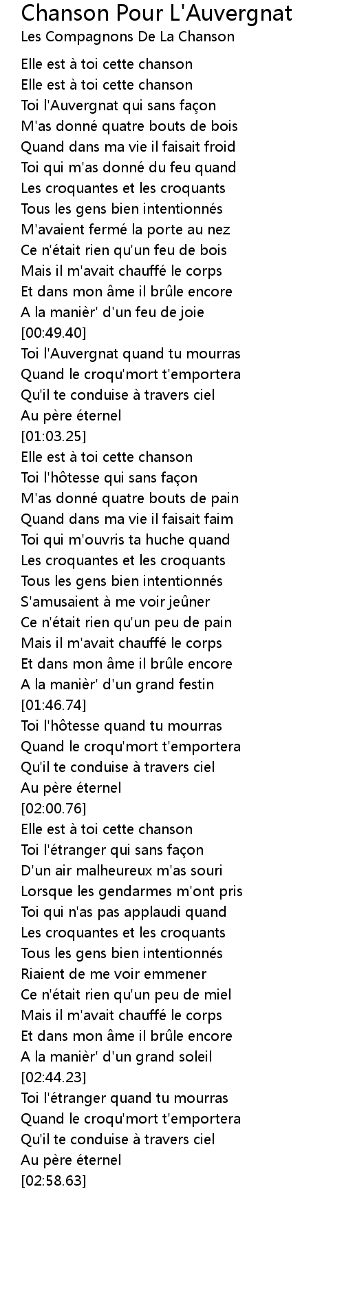 | [00:50.28] | Toi l' Auvergnat quand tu mourras |