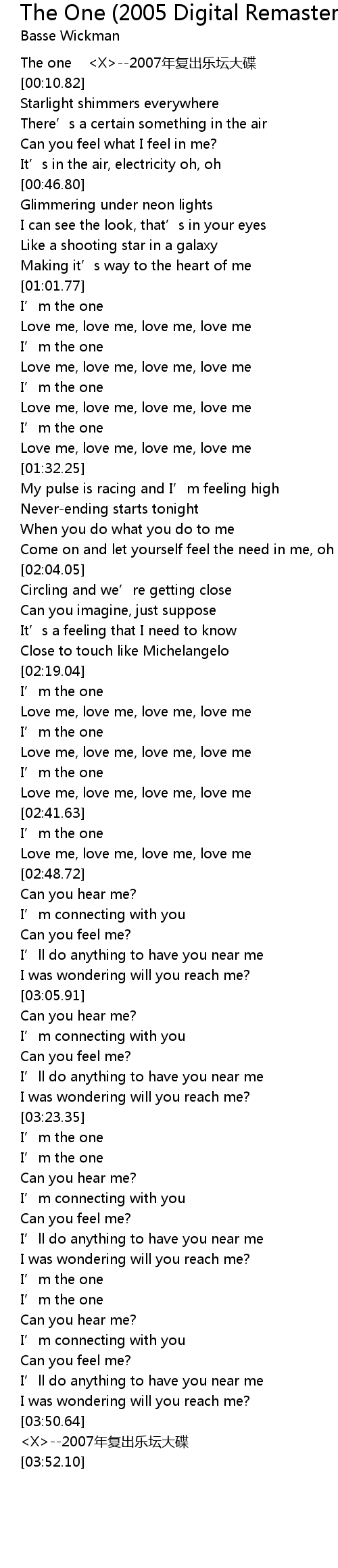 | [00:02.52] | The one <X>--2007年复出乐坛大碟 |