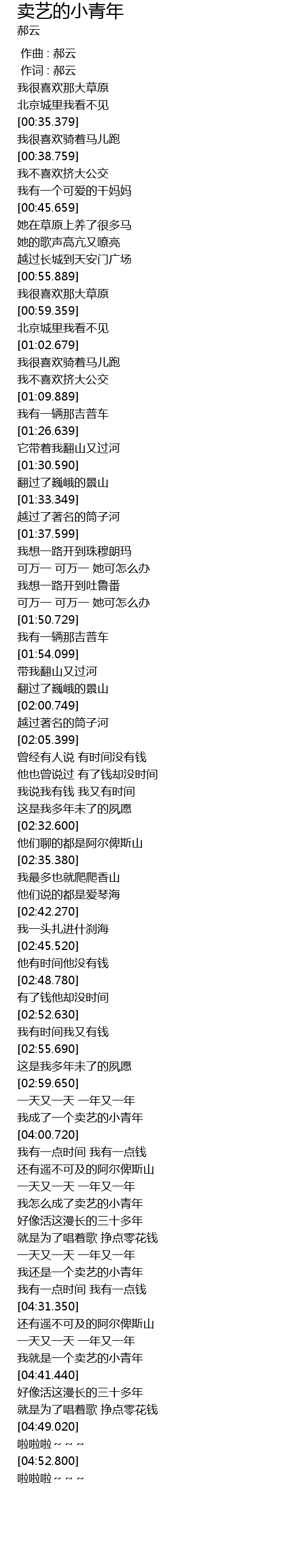 | [04:25.450] | 我还是一个卖艺的小青年 |