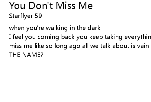 | I feel you coming back you keep taking everything ruining the scene you don't miss me like so long ago all we talk about is vain what about | |