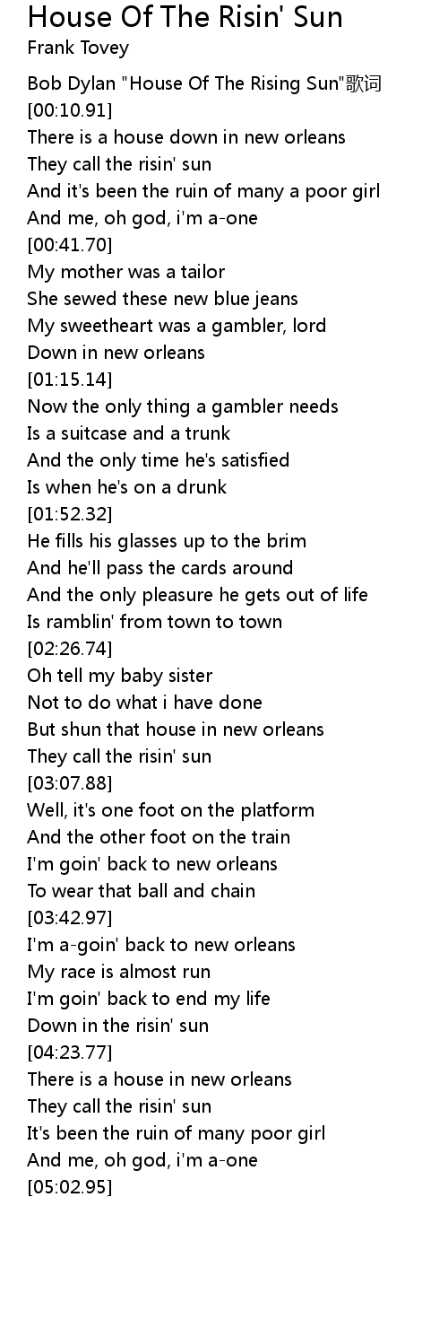 | [00:05.92] | Bob Dylan " House Of The Rising Sun" ge ci |