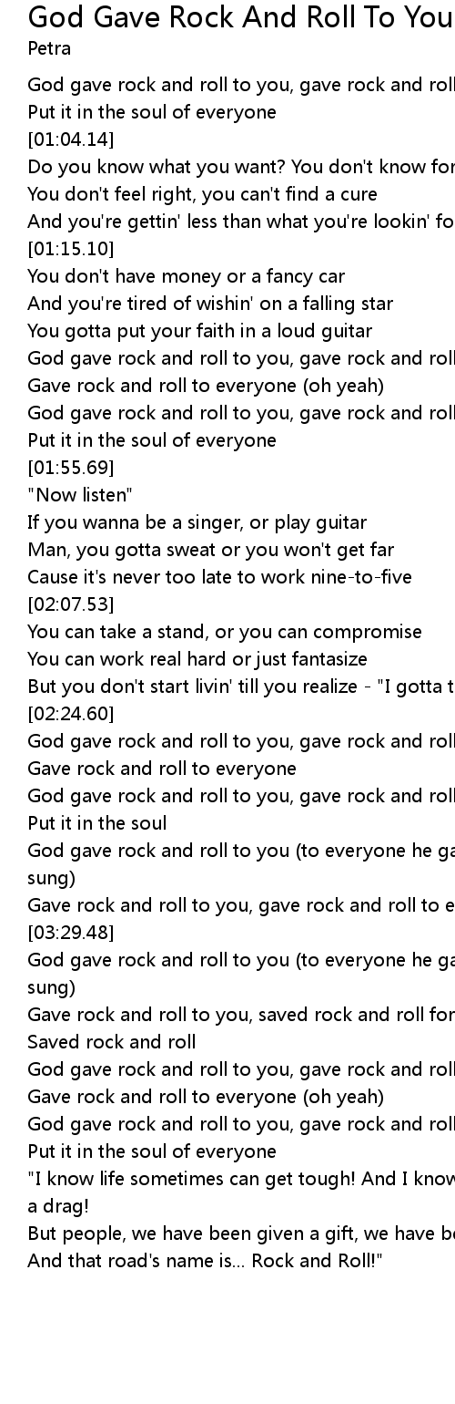 [03:18.22] God gave rock and roll to you (to everyone he gave the song to be sung)