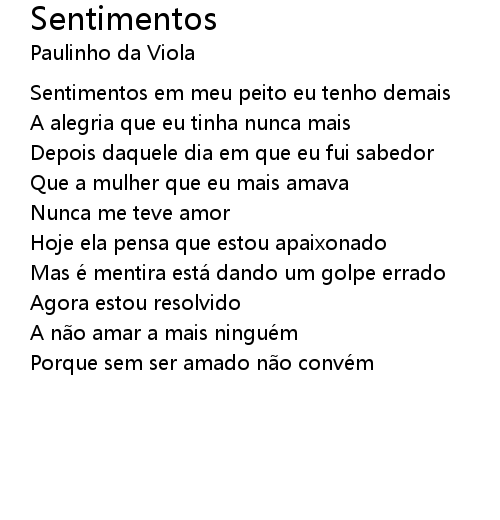 | Sentimentos em meu peito eu tenho demais | |