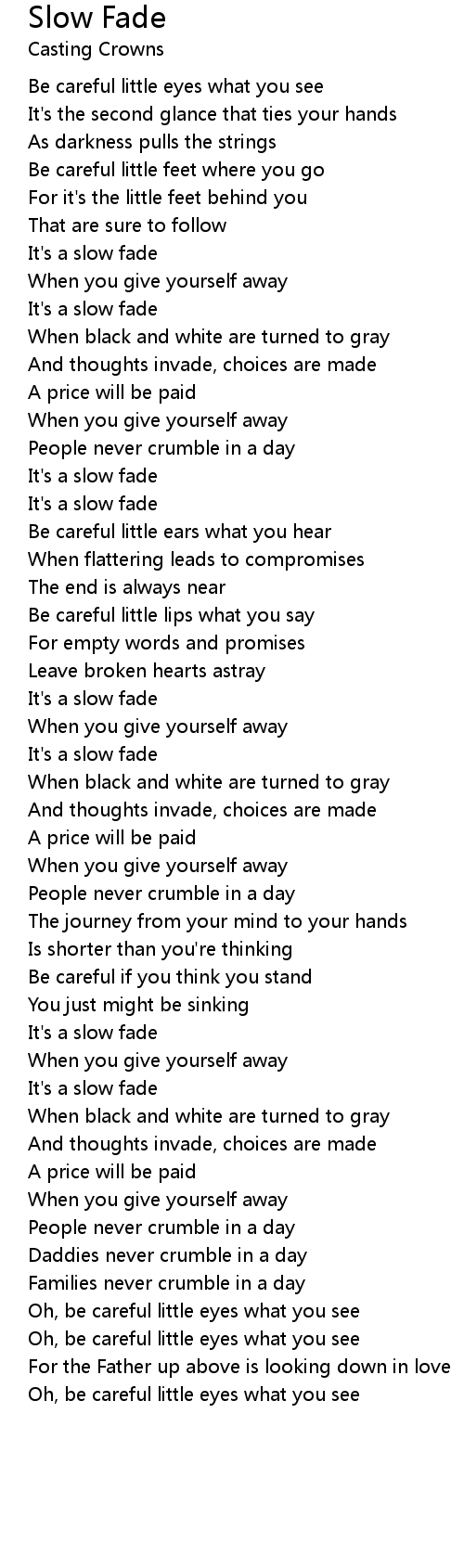 Be careful little eyes what you see |