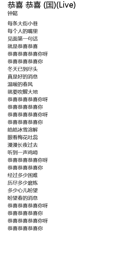 | [00:50.080] | 恭喜恭喜恭喜你呀 |