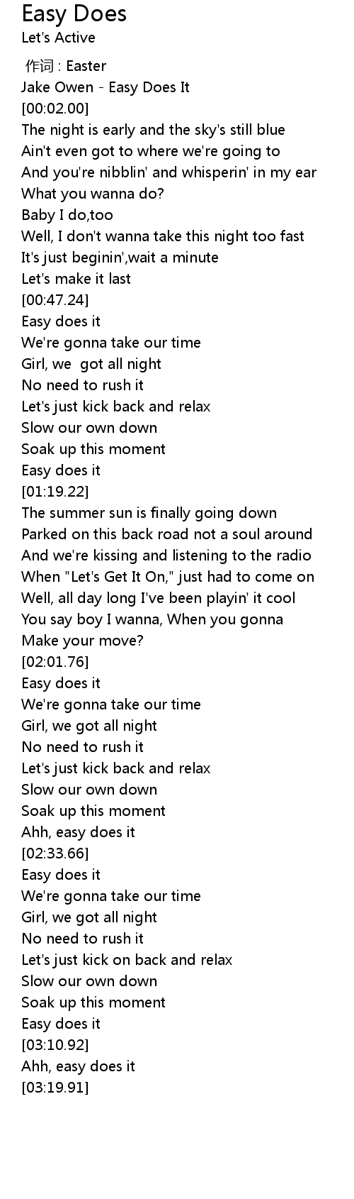 | [00:35.27] | Well, I don't wanna take this night too fast |