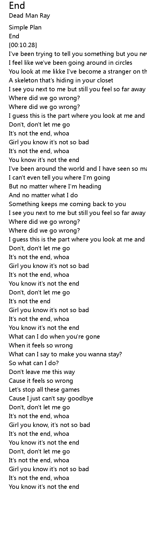 You know it's not the end |