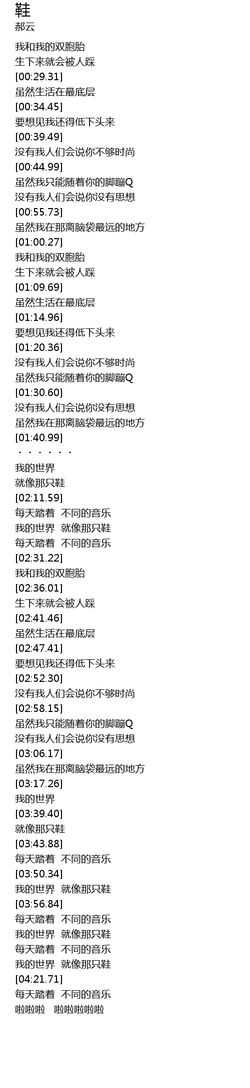 | [04:16.56] | 我的世界 就像那只鞋 |