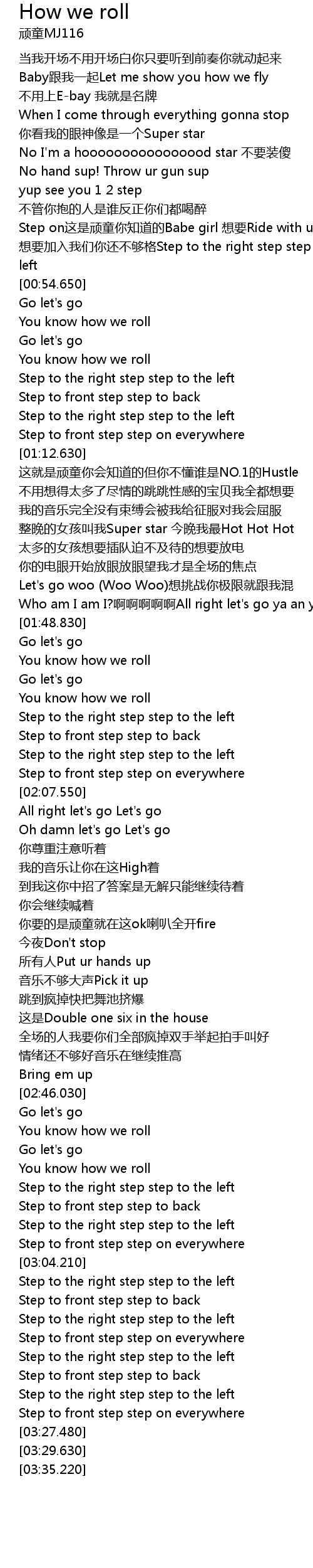 | [00:43.950] | Step on这是顽童你知道的Babe girl 想要Ride with us |