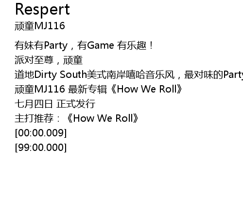 | [01:03.95] | 顽童MJ116 最新专辑《How We Roll》 |