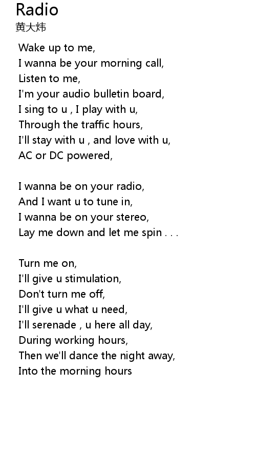 | I wanna be on your radio, | |