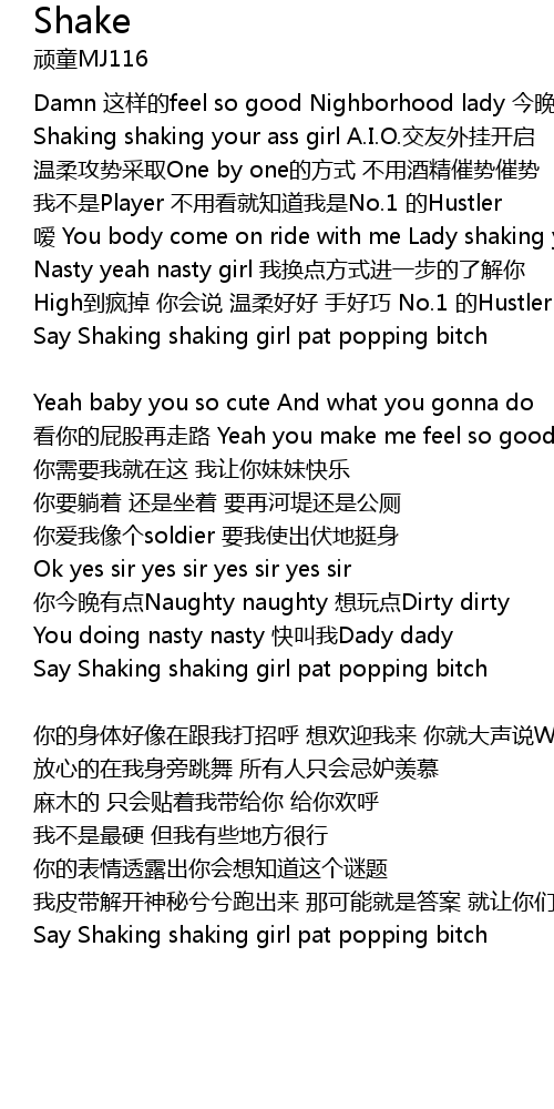 | Shaking shaking your ass girl A. I. O. jiāo yǒu wài guà kāi qǐ | |