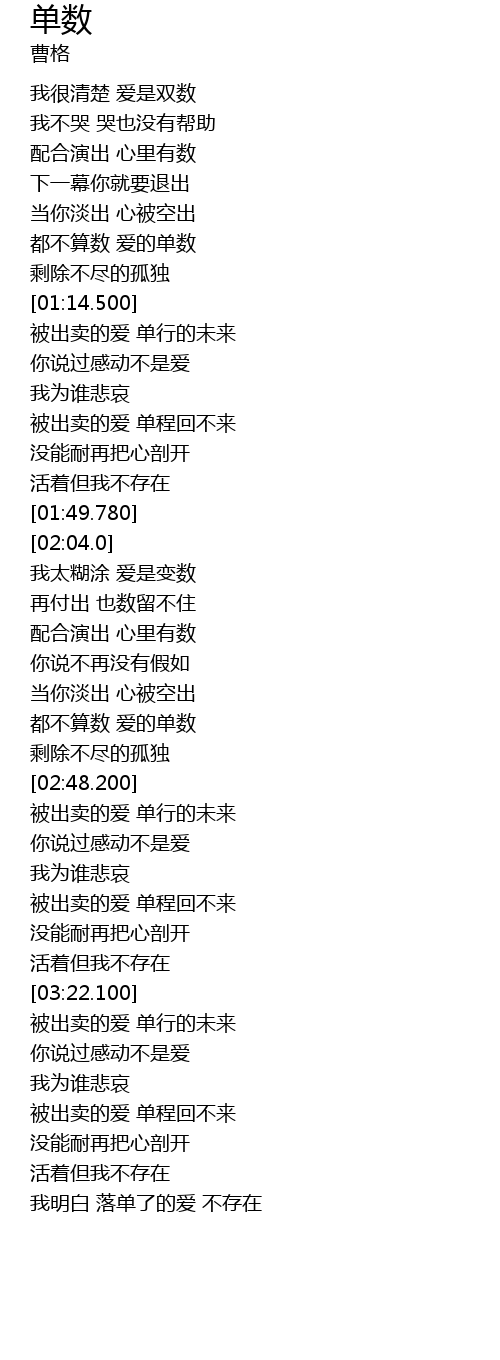 | [02:41.700] | 都不算数 爱的单数 |