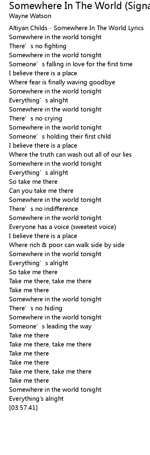 | [00:00.00] | Altiyan Childs Somewhere In The World Lyrics |