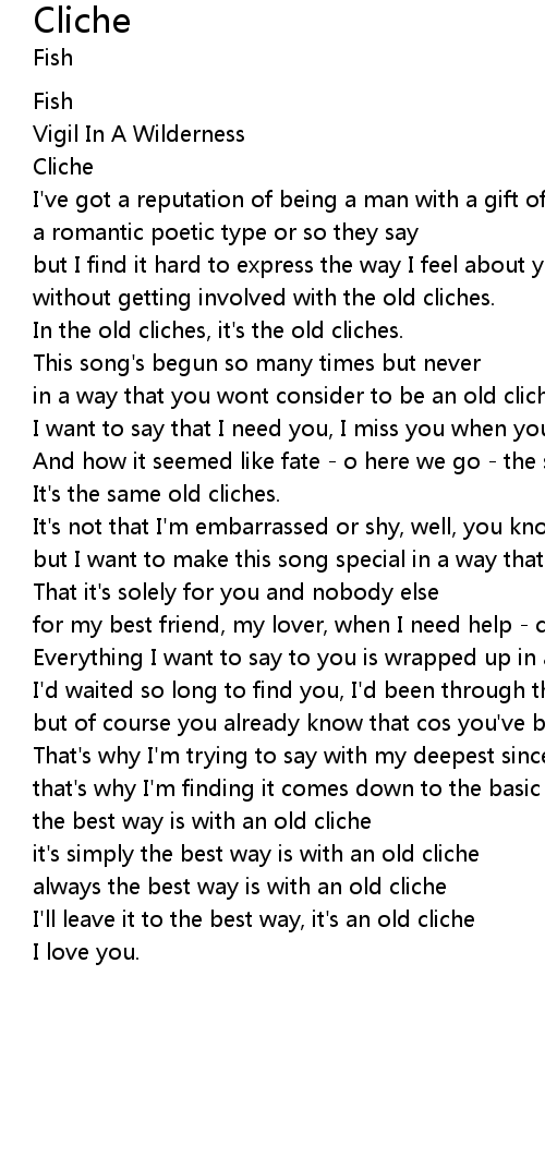 And how it seemed like fate - o here we go - the same old cliches. |
