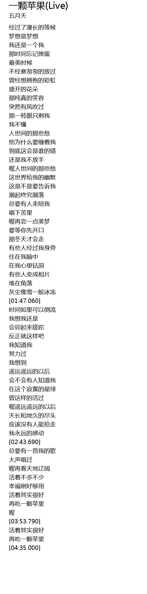 | [03:22.470] | zài chī yī kē píng guǒ |