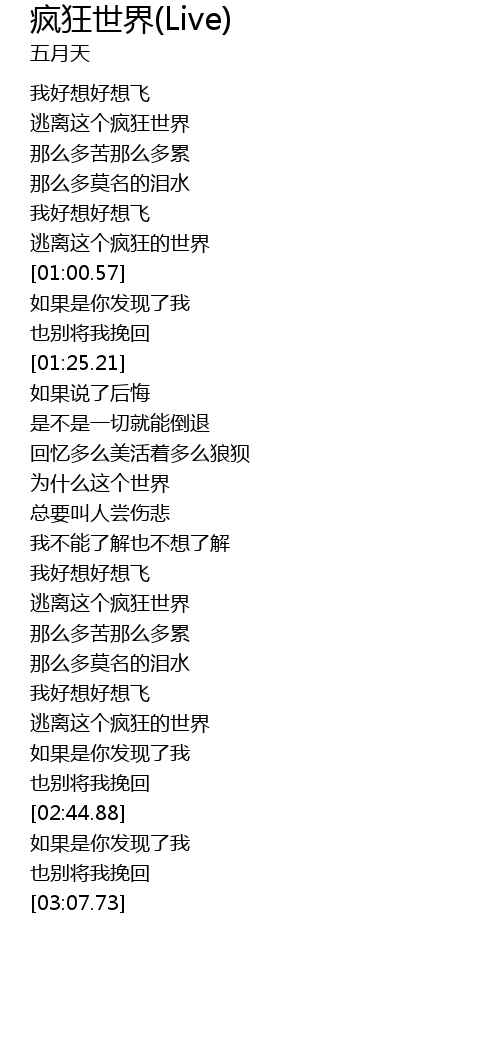 | [02:33.17] | 逃离这个疯狂的世界 |