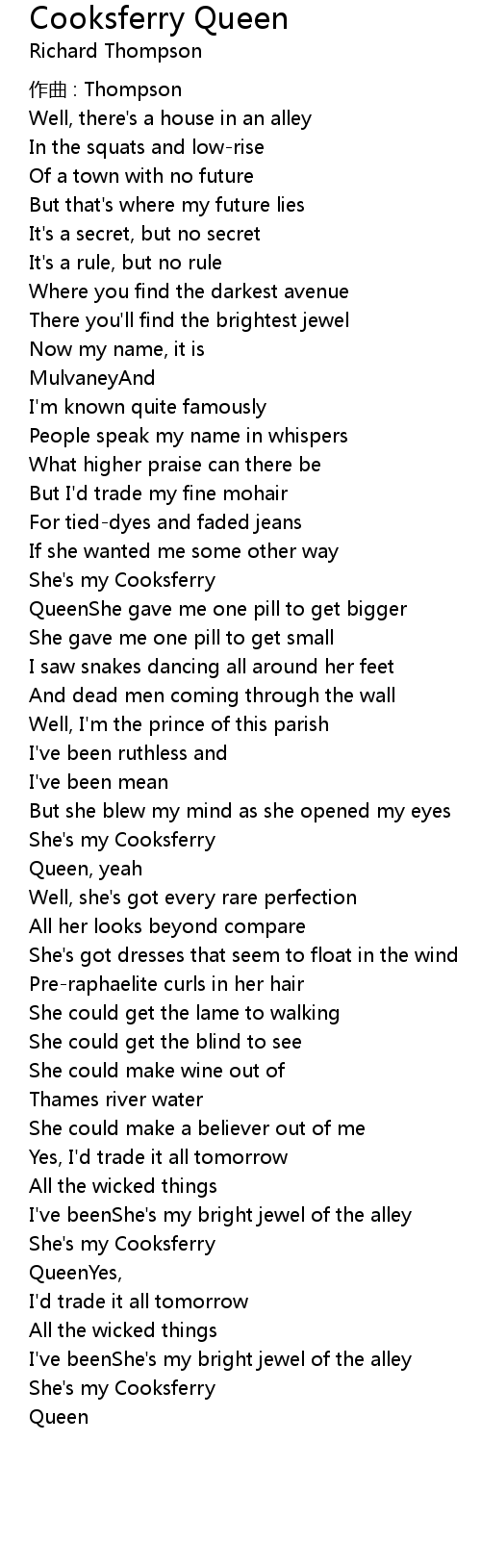 | Song | Cooksferry Queen |