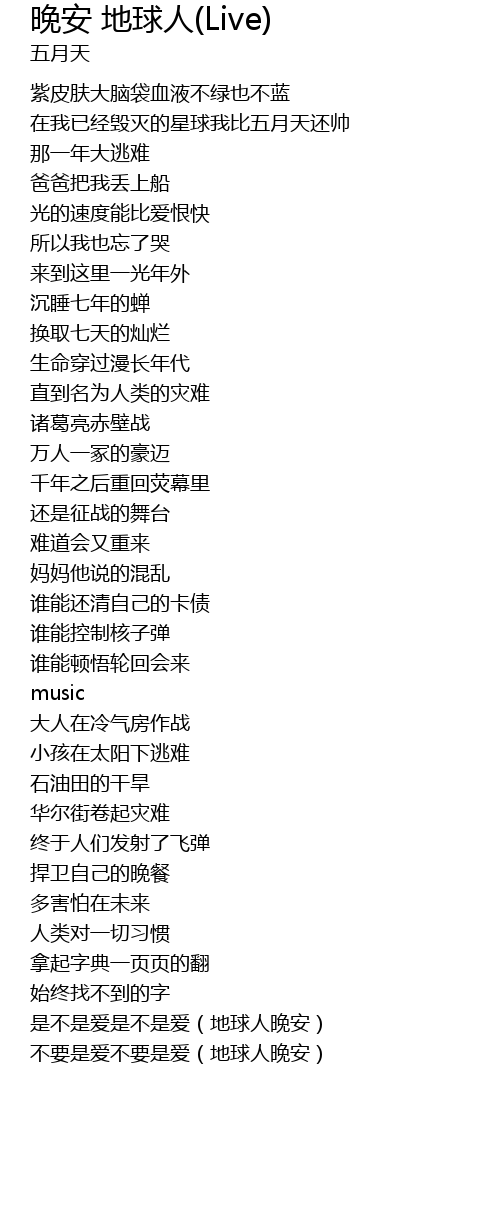 | [03:15.05] | 不要是爱不要是爱(地球人晚安) |