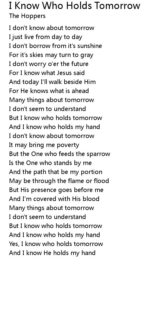 But I know who holds tomorrow |