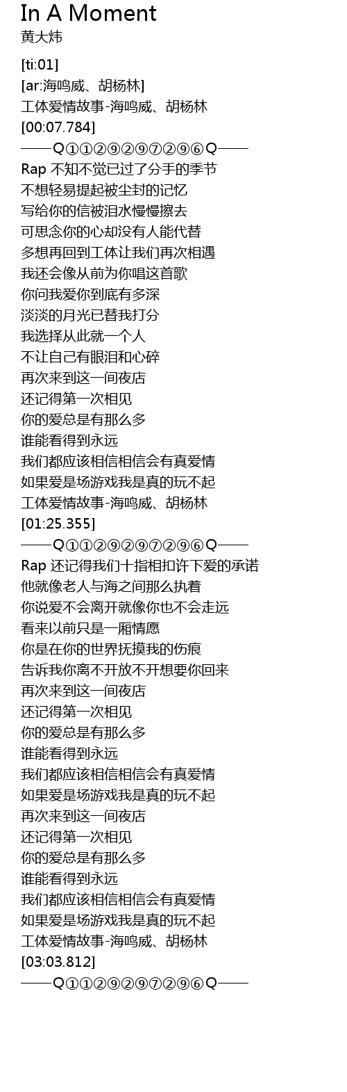 | [01:43.233] | Rap 还记得我们十指相扣许下爱的承诺 |