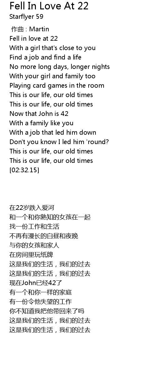 | [00:02.18] | Fell in love at 22 |