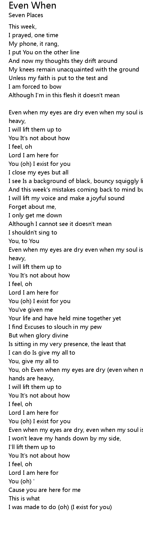 Even when my eyes are dry even when my soul is tired even when my hands are heavy, |