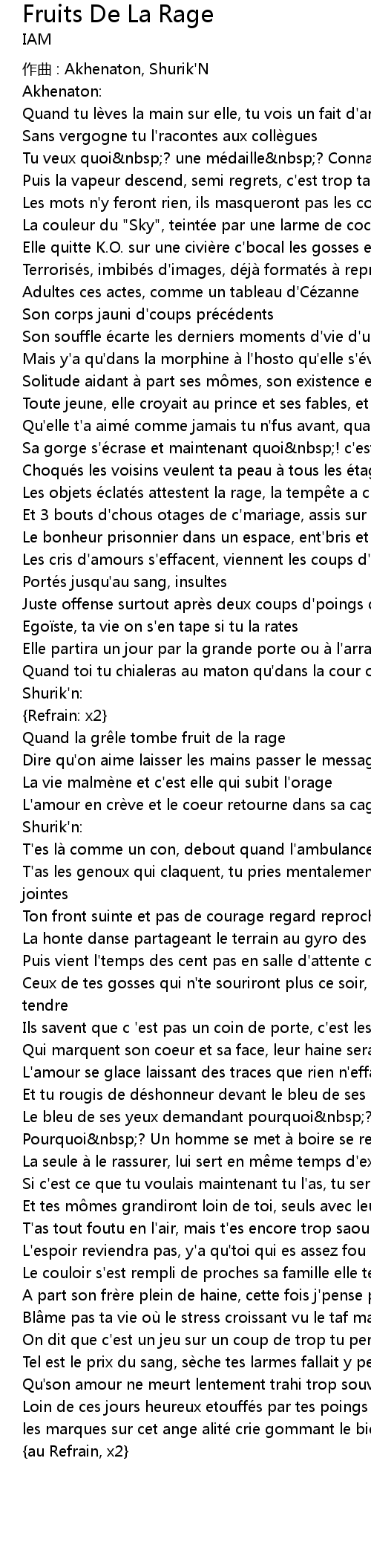 | Loin de ces jours heureux etouffe s par tes poings brisant ce lien sacre | |