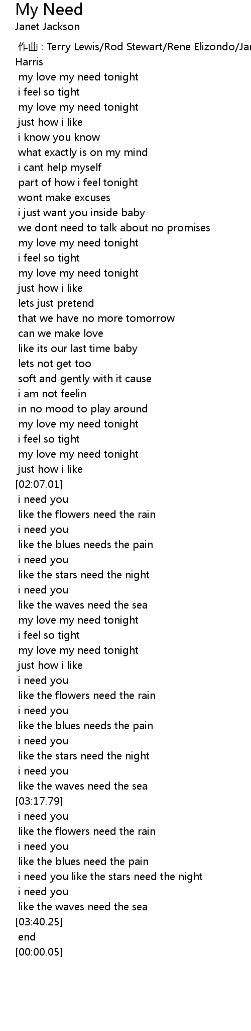 | [00:00.00] | 作曲 : Terry Lewis/Rod Stewart/Rene Elizondo/Janet Jackson/James Harris |