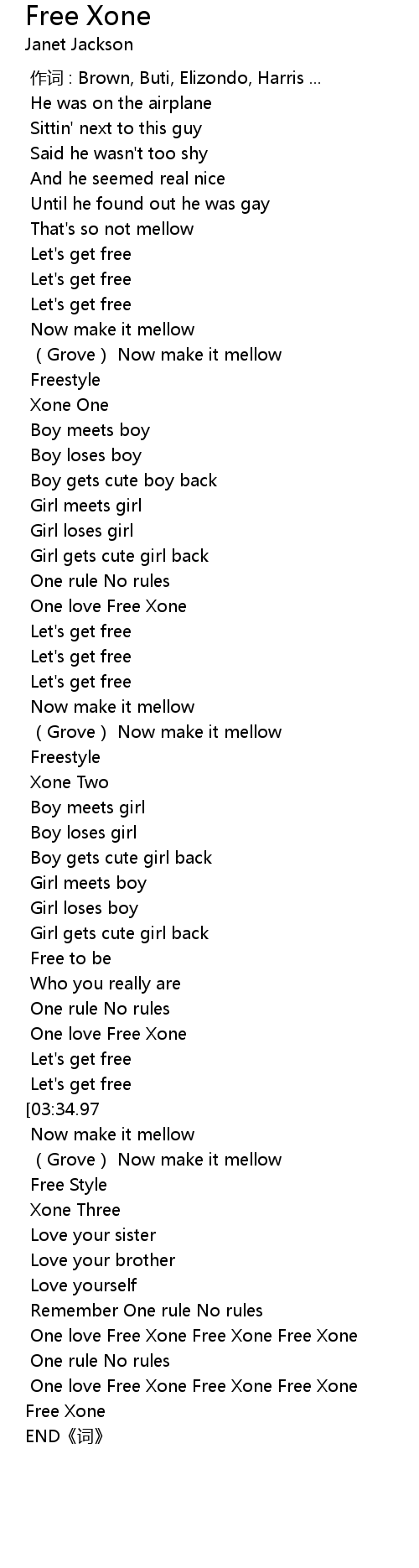 | [04:32.05] | One love Free Xone Free Xone Free Xone |